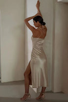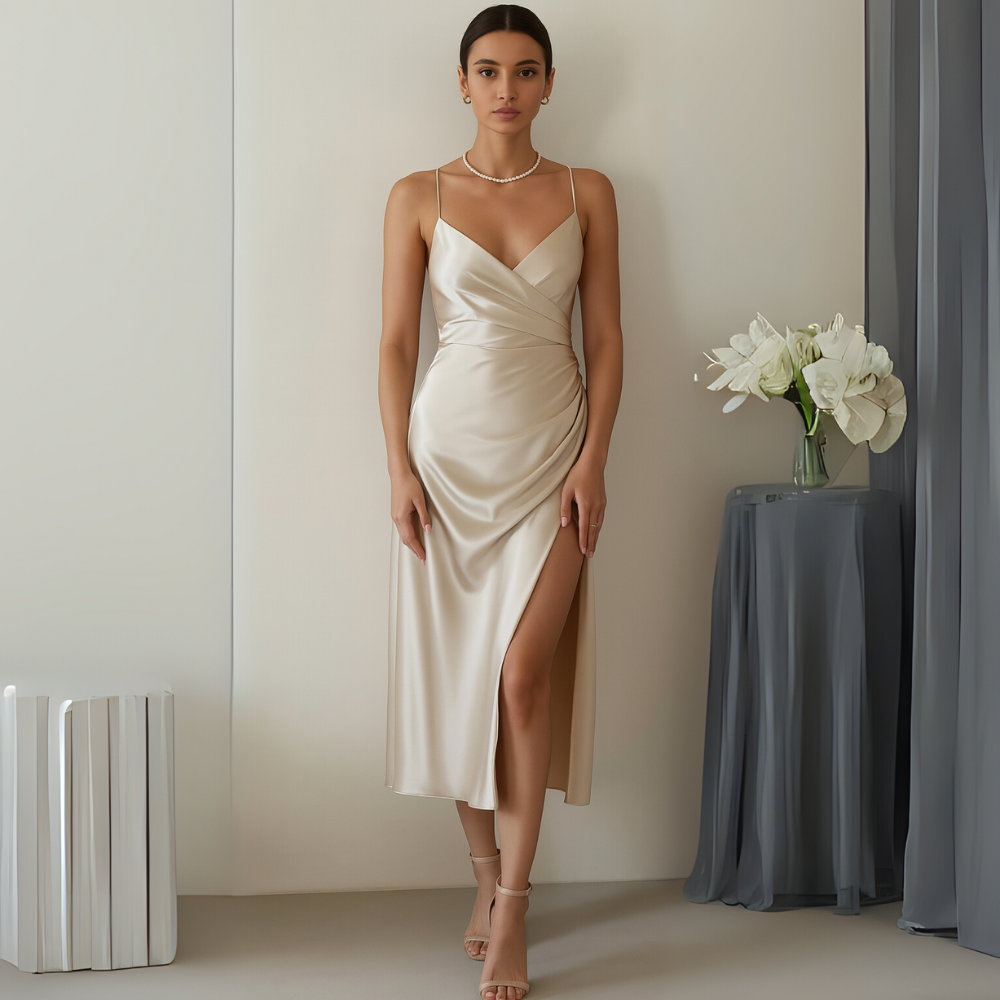 جيوفانا | فستان ميدي مشقوق - أسلوب خفيف وحمالات رقيقة