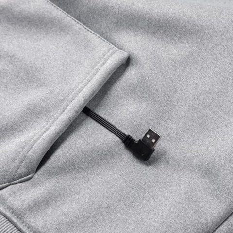 Denne sweatshirt er designet til at sprede varmen, hvor kroppen har mest brug for det, foran som bagpå. Det opvarmningssystem får strøm fra et eksternt batteri, der er tilsluttet via USB-kabel i lommen. Ideel til kolde dage, den integreres nemt i dit daglige tøj, både i byen og udendørs.