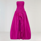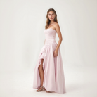 Tämä pitkä, levenevä mekko hurmaa suoralinjaisella pääntiellä ja rypytetyllä yläosalla, joka korostaa vartalon muotoja. Sen pöyheä helma tuo tilavuuden ja keveyden jokaiseen askelmaan. Ihanteellinen elegantteihin tilaisuuksiin ja juhlaville illallisille.