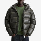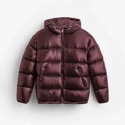 אלכסיס | מעיל קצר לגברים — עם כובע וגימור מבריק