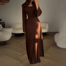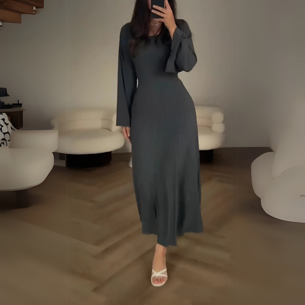 לונה | שמלה ארוכה אלגנטית – שרוולים ארוכים וגזרה מעודנת