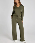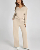 この2ピースのセットは、柔らかさとエレガンスを兼ね備えています。自宅でリラックスするのにも、カジュアルな外出にも最適です。あなたのスタイルに合わせて、さまざまな色で利用可能です。