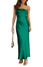 このストラップレスのサテンロングドレスは、エレガントで女性らしいシルエットを描きます。流れるような軽やかさで、夏の夜や結婚式、特別な場面に最適です。シルクのような落ち感が洗練された印象を与え、最適な快適さを確保します。すべてのスタイルに合うように、複数の色でご用意しています。