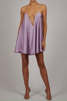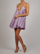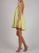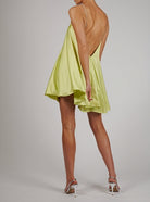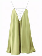 この流れるような短いドレスは、エレガンスと軽やかさでシルエットを引き立てます。宝石で飾られた細いストラップは、明るく洗練されたタッチをもたらします。各ディテールが重要な夜のイベントや特別な機会に最適です。