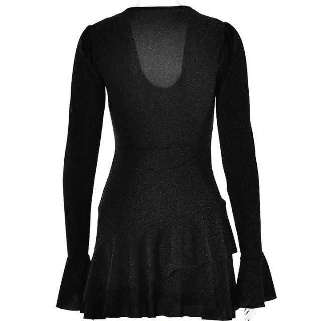 このきらめくミニドレスは、あなたの夜に輝くのに最適です。フレアスリーブが洗練された印象を与えます。フラatteringなカットがあなたのシルエットを引き立てます。