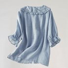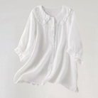 この軽やかなシャツは、エレガントなフリルカラーとミディアムスリーブを備えており、カジュアルな夏のスタイルを演出します。ゆったりとしたシルエットは、1日中快適さを保証します。さまざまな場面にぴったりで、異なるボトムスと簡単に組み合わせることができます。