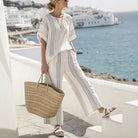 ルドミラ | ストライプのゆったりとした夏のセットとストレートパンツ