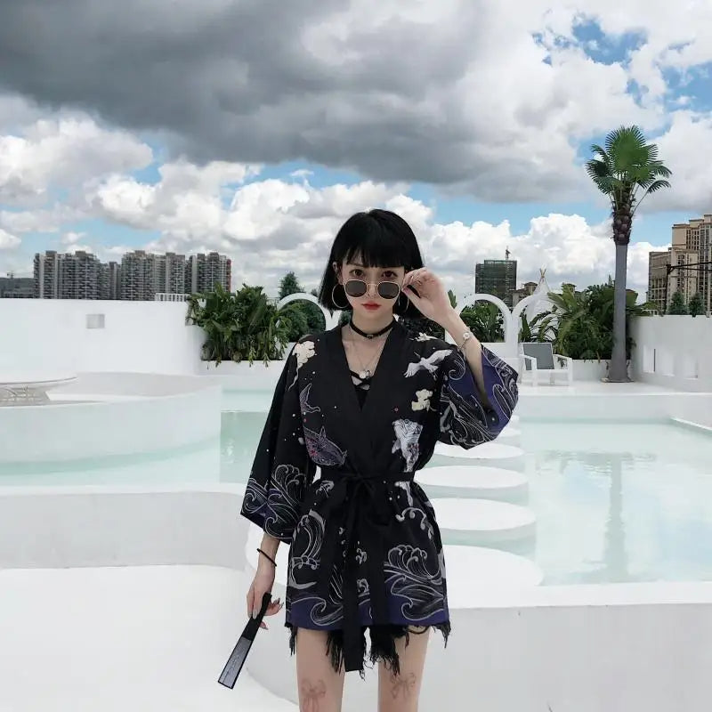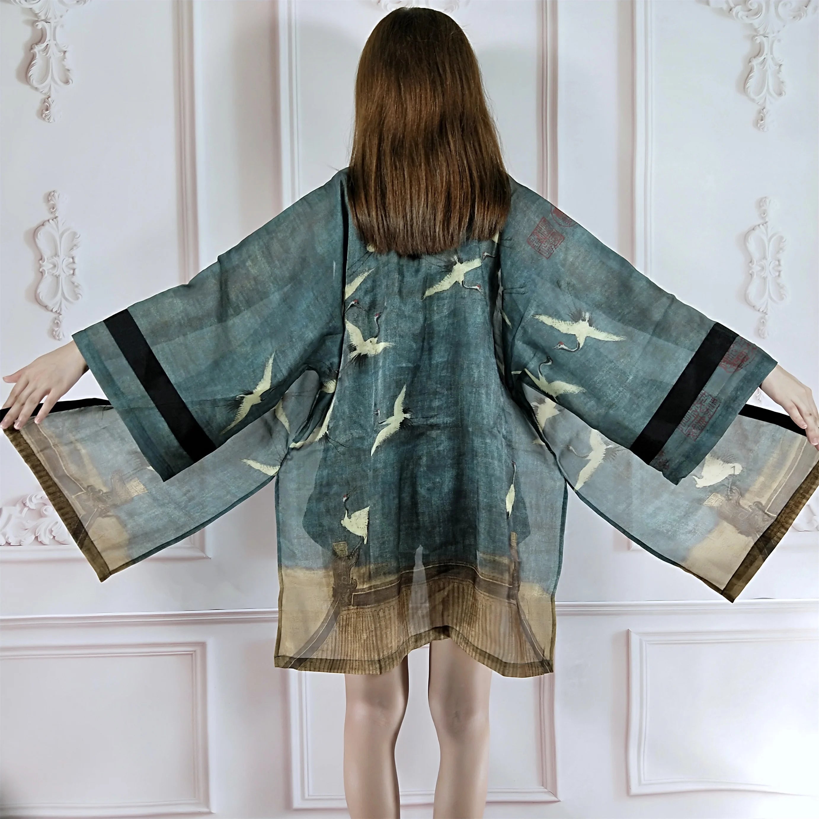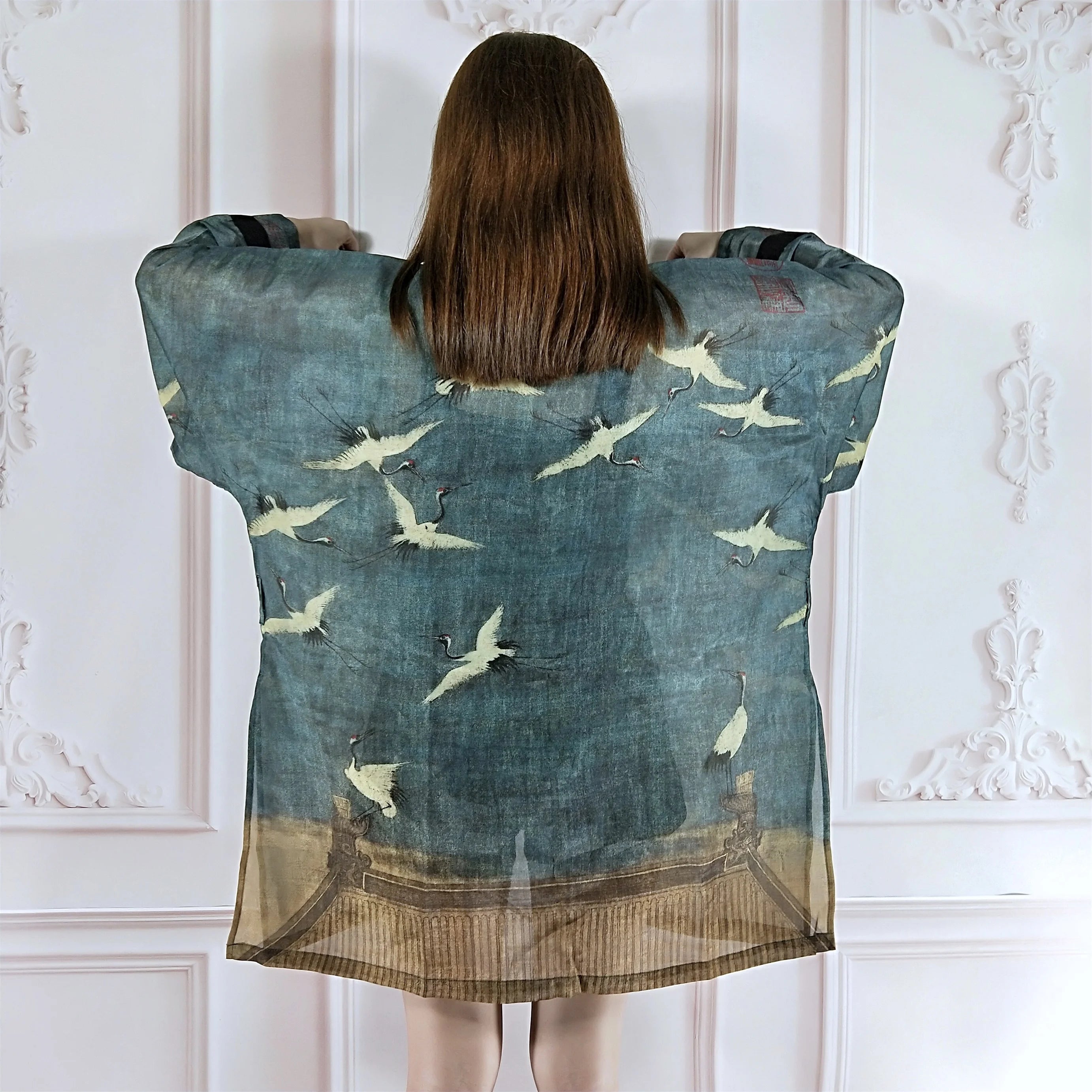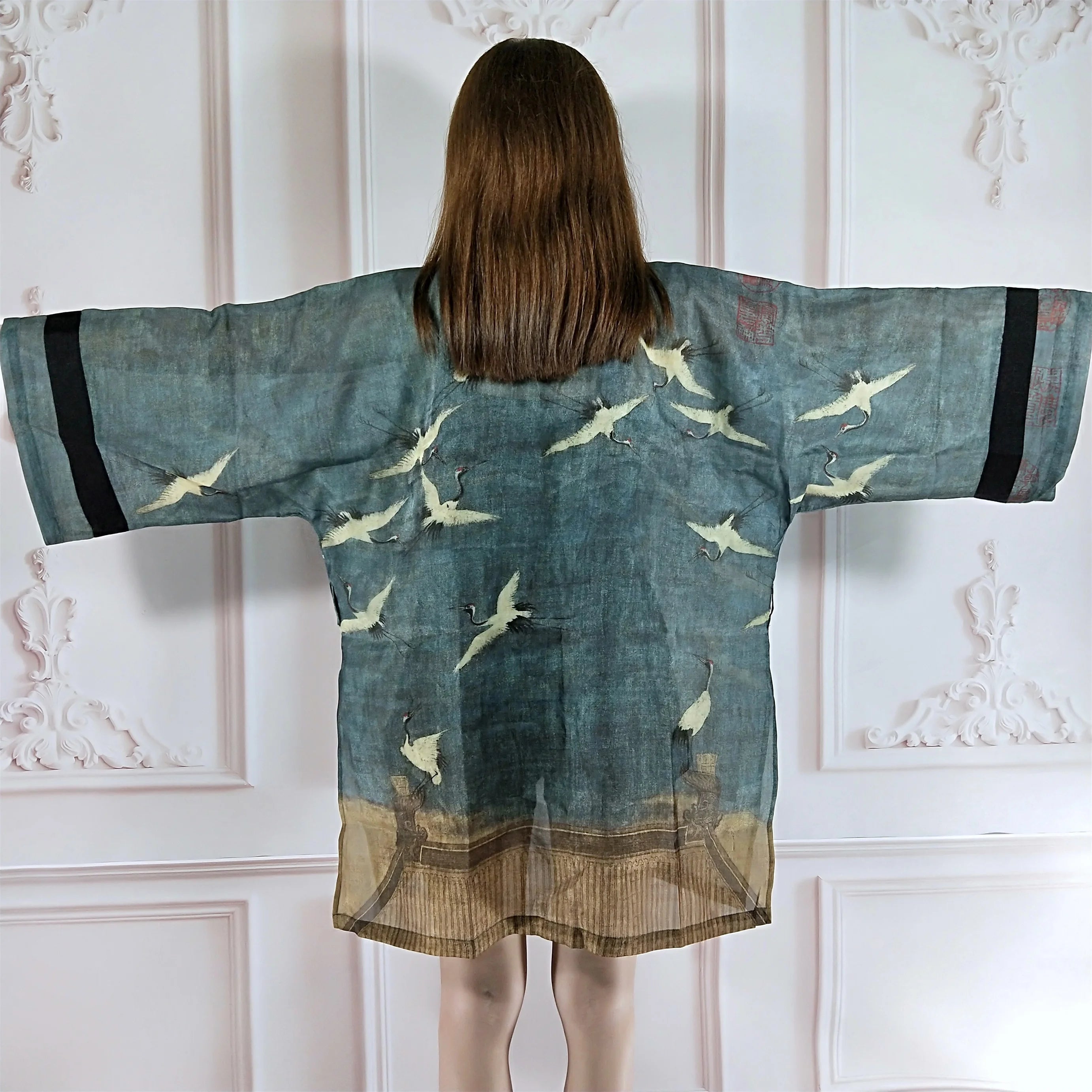 Rim-Rosa | Kimono jakke med japanske fuglemønstre