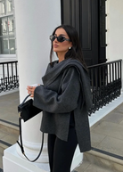 Ten płaszcz-kapa łączy ponadczasową sofistykę z nowoczesnym komfortem. Jego płynny design z wbudowanym szalikiem dodaje każdej stylizacji odrobiny gracji.