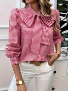 This blouse features a timeless checkered pattern enhanced by an elegant bow detail. Its long sleeves make it ideal for all seasons. Easy to match, it is suitable for both casual and professional occasions.