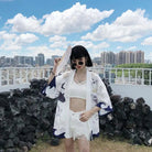 This women's kimono jacket is adorned with a refined print featuring Japanese birds, symbols of harmony and grace. Its loose and flowing cut ensures perfect comfort, whether for a casual look or a more dressed-up outfit.