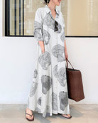 Denna långa skjortklänning förför med sin flödande silhuett och konstnärliga touch. Dess strukturerade och originella design passar både för avkopplande dagar och mer uppklädda utflykter. De långa ärmarna och skjortkragen ger en elegant ton till denna helt avslappnade modell.